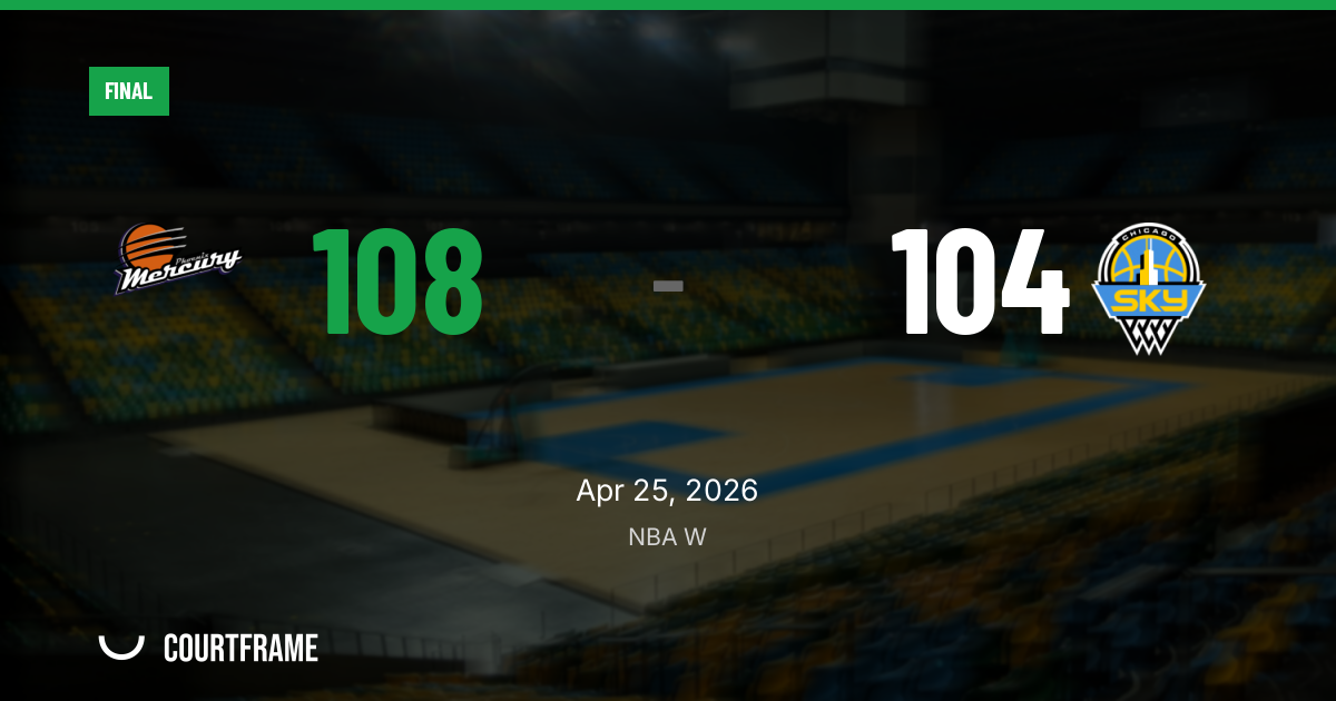 Phoenix beat Chicago Sky W 108-104 on April 25 at Mortgage Matchup Center, closing out a tight, offense-driven regular-season opener after leading 29-22 through the first quarter. The Sky kept coming — scoring 27, 28 and 27 points over the final three periods — but never fully erased the early separation.