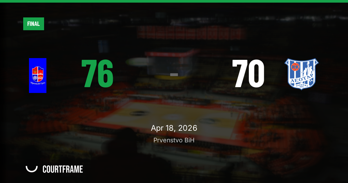 Behind a 26-19 fourth quarter, Mrkonjić Grad closed out a 76-70 win over Leotar Trebinje on April 18, 2026 at Arena Komercijalne Banke, turning a tight, low-margin game into a needed result in the Prvenstvo BiH regular season. Mrkonjić entered at 8-16; Leotar at 10-14.