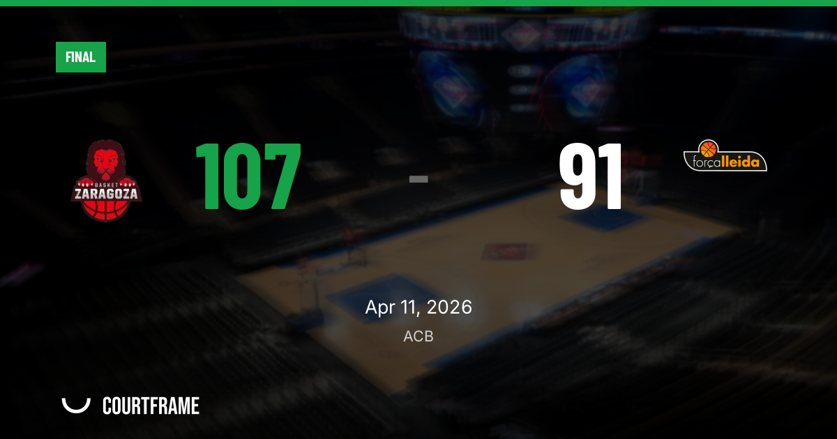 Zaragoza led 24-19 after one, then detonated in the second to take a 58-46 halftime lead. Lleida never got the margin back to single digits across the final two periods as Zaragoza posted 23 in the third and 26 in the fourth to close cleanly.
