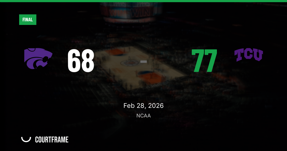 The absence of overtime and the steady nine-point margin suggest TCU created separation and maintained it. Kansas State didn’t get the one extended swing it needed — the kind that forces late-game possessions into coin flips. Instead, TCU’s ability to finish the night with 77 points proved decisive.
