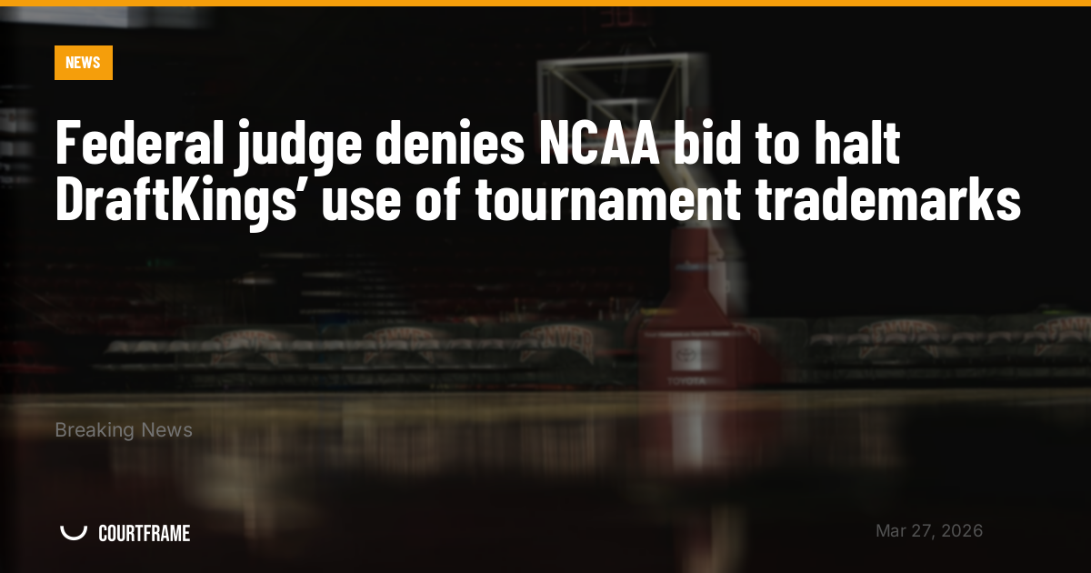 A federal judge has denied the NCAA’s request for a temporary restraining order aimed at stopping DraftKings from using registered trademarks tied to the NCAA men’s and women’s basketball tournaments. The ruling allows DraftKings to continue using the terms for now.