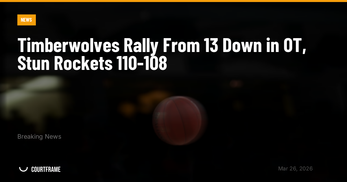 Minnesota closed overtime with a decisive 15-0 run to erase a 13-point deficit and beat Houston 110-108 on Wednesday night. The comeback marked the largest overtime rally on record.